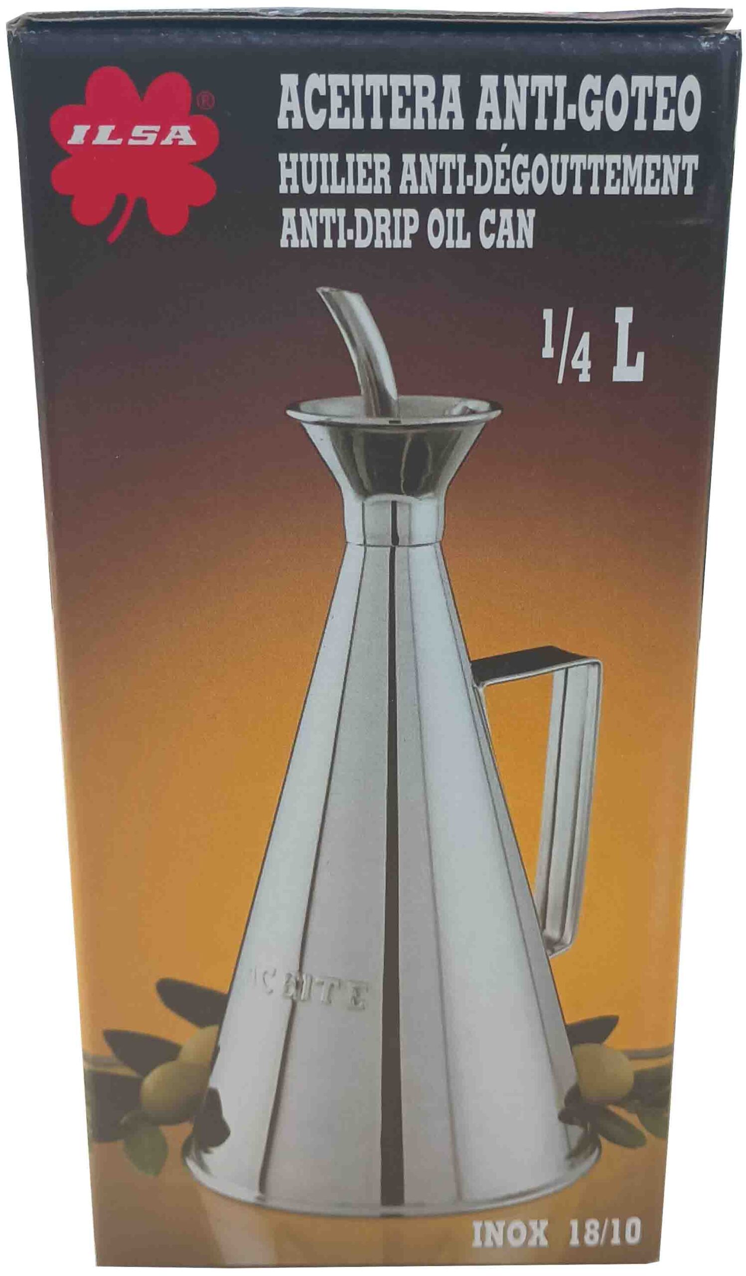ACEITERA ANTIGOTEO DE 1/4 LITRO DE ACERO INOXIDABLE 18/10. DE ILSA.