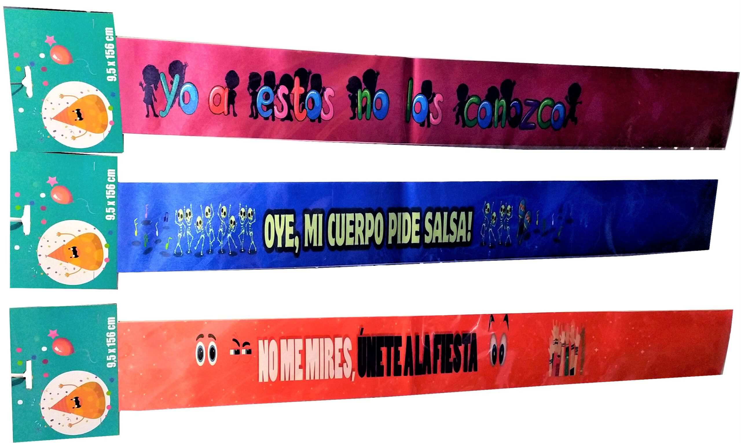 BANDA FIESTA FRASES SURTIDAS. CONSULTAR DISPONIBILIDAD DEL MODELO. PRECIO POR UNIDAD.