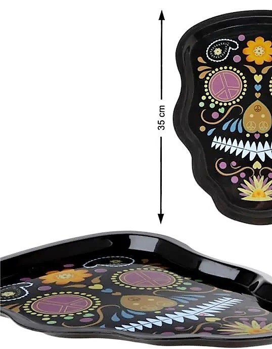 BANDEJA DE PLASTICO DECORADA CALAVERA PARA HALLOWEEN.