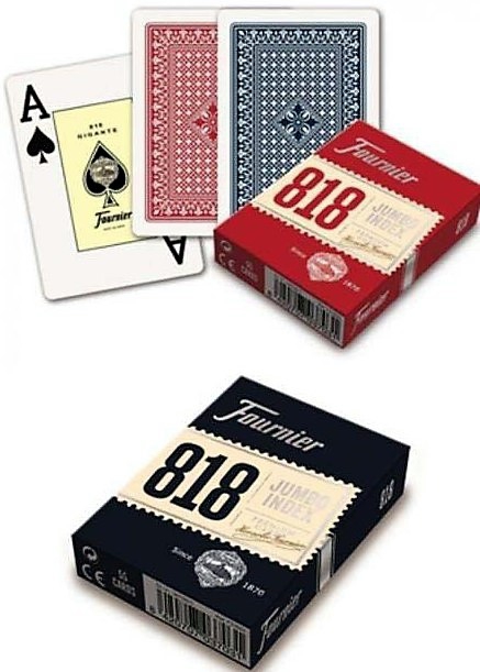 Baraja de cartas Fournier 818 con números grandes. Disponible en dos colores surtidos (rojo o azul). 55 Naipes para jugar a poker. CONSULTAR DISPONIBILIDAD DEL MODELO. PRECIO POR UNIDAD.