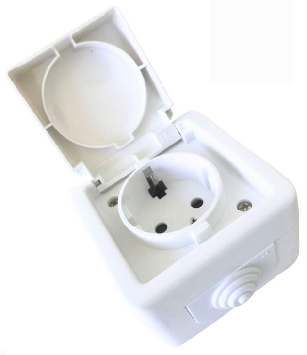 BASE DE SUPERFICIE EXTERIOR IP54 DE 10A. 250V. BLANCA. DE F-LINE.