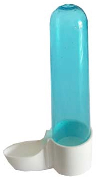 Bebedero de plástico ideal para suministrar agua limpia y fresca a los pájaros. Es fácil de instalar en cualquier jaula, encajando en los barrotes la boquilla