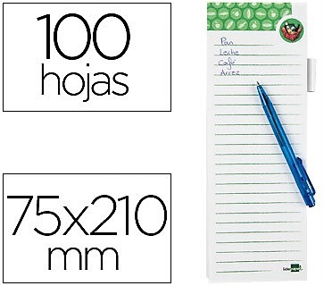 Bloc de notas con base imantada. Ideal para pegar en electrodomésticos y escribir la lista de la compra. Con bolígrafo incluido. 100 hojas de papelde 80 g/m2