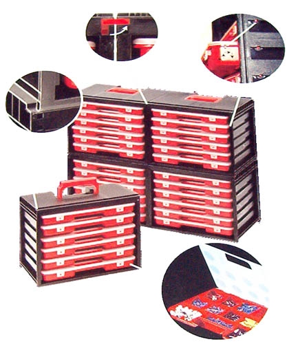 CAJONERA CON ASA ARCHIVADOR 6 CAJONES CON CIERRE PLASTICO 30X35.5X23.5 COLOR ROJO Y NEGRA