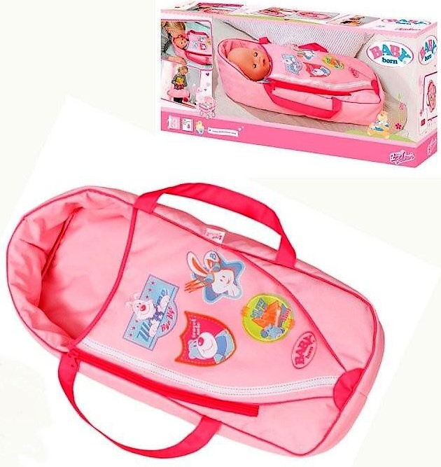 Capazo de color rosa con cierre por cremallera y un bonito estampado de animales ideal para llevar a tu bebé Baby Born. Acepta muñecos de hasta 43cm.