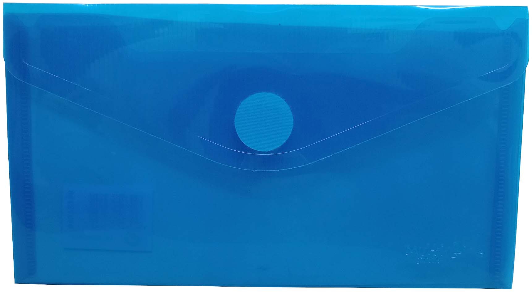 CARPETA PORTADOCUMENTOS TIPO SOBRE DE PLASTICO TRASLUCIDO, TAMAÑO RECIBO DE 22,5X12,5CM. APAISADO CON BROCHE DE VELCRO.