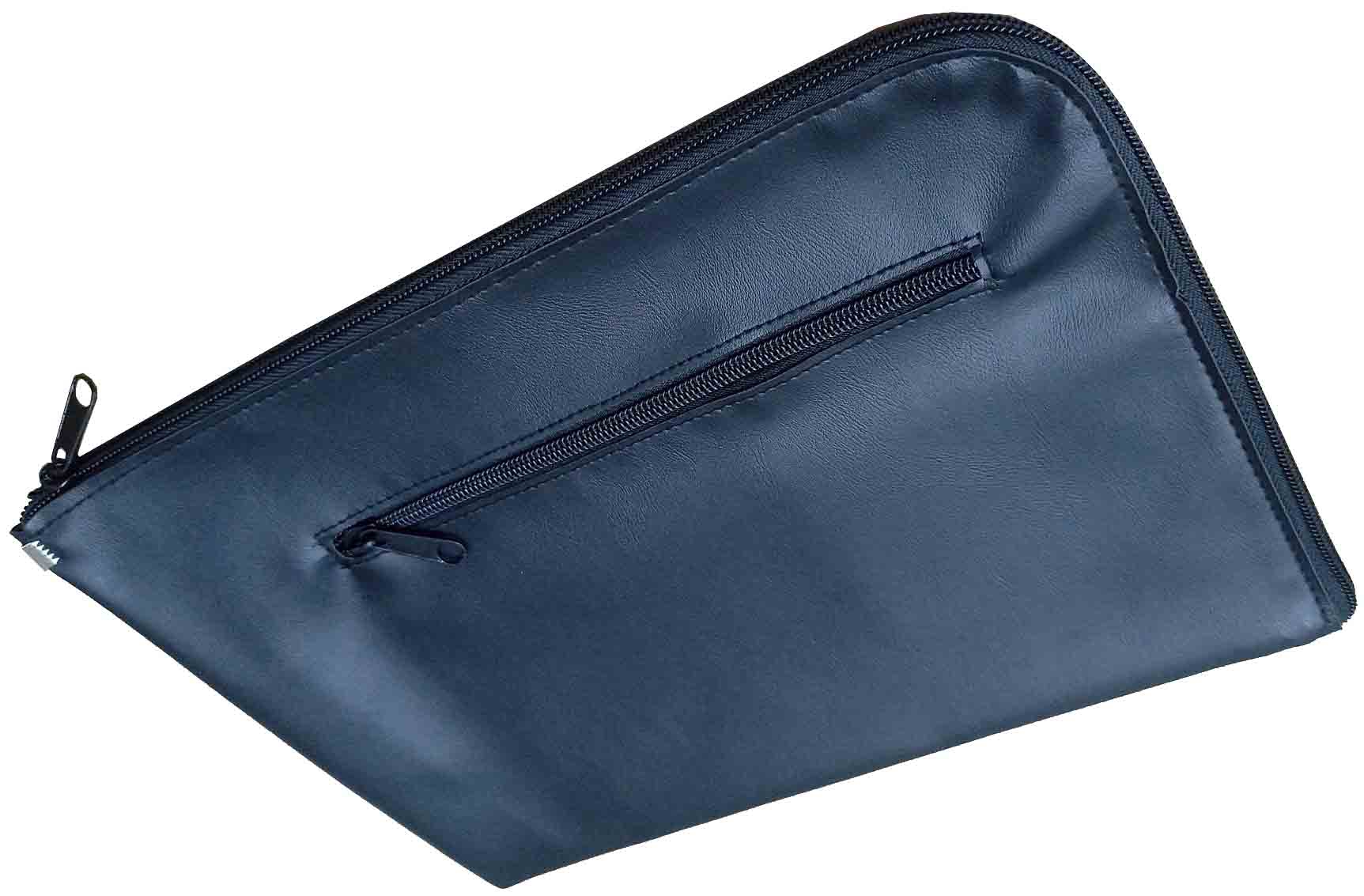 Cartera con 2 cremalleras portadocumentos. Fabricada en plástico color negro, con apertura de 90º, con bolsillo interior y otro exterior con cremallera.