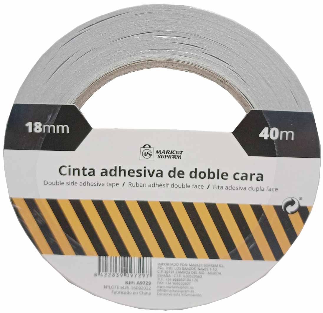 CINTA ADHESIVA BLANCA DE DOBLE CARA DE 18MMX40M DE MARKET SUPREM A9729.