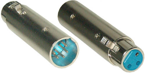 CLAVIJA CONVERTIDOR METALICO DE 3 PINES XLR HEMBRA A 5 PINES XLR MACHO, ADAPTADOR DE CONECTOR PARA VIDEOCAMARA DMX LUZ DE SEÑAL. PRECIO POR UNIDAD.