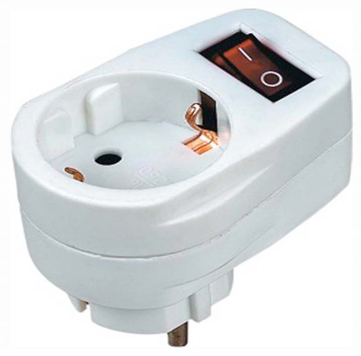 CLAVIJA SCHUKO CON BASE DE TOMA DE TIERRA DE 1 MACHO + 1 HEMBRA CON INTERRUPTOR PILOTO DE 16A. 250V. 3680W. MAX.