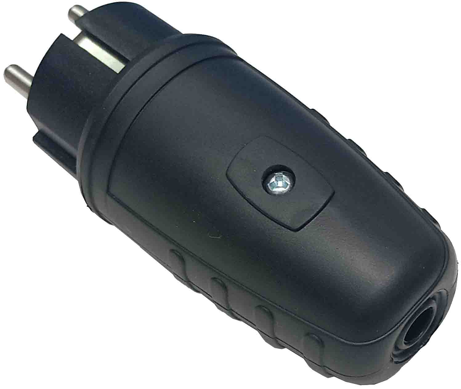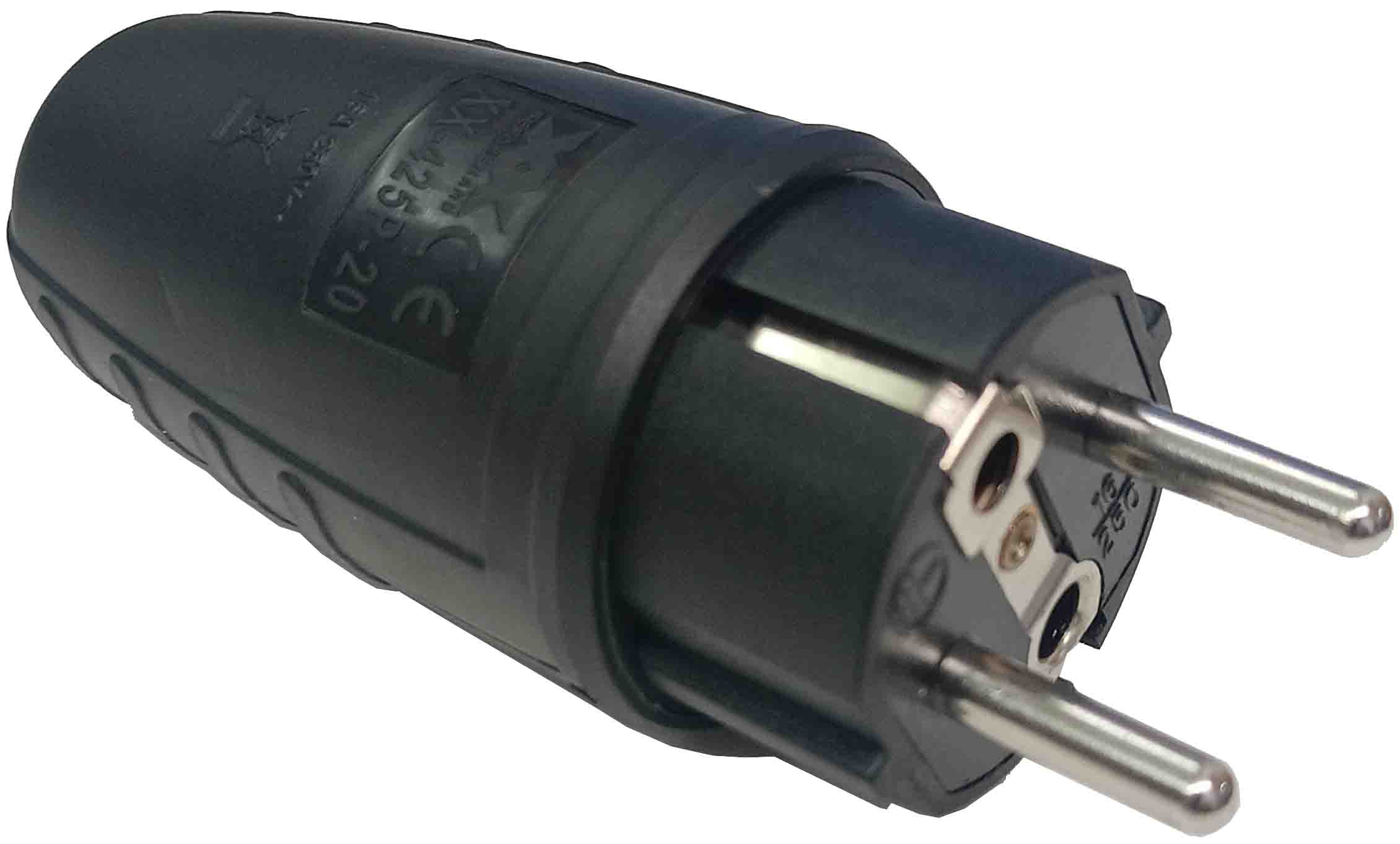 CLAVIJA SCHUKO DE GOMA MACHO ESPIGAS DE 4.8MM. DE 16A. 250V. TOMA TIERRA NEGRA