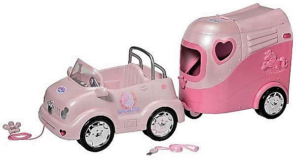 COCHE DESCAPOTABLE CON REMOLQUE PARA CABALLO CON LUCES Y 3 MELODIAS PARA MUÑECO BABY BORN. MUÑECO NO INCLUIDO MODELO 116780 MARCA ZAPF CREATION