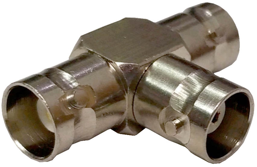 CONECTOR ADAPTADOR BNC EN FORMA DE T, CON TRES CONECTORES TIPO HEMBRA.