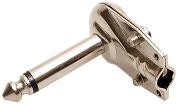 CONECTOR CLAVIJA DE AUDIO MACHO JACK DE 6.3 MONO METALICA LATERAL CAPUCHON ACODADO METALICO