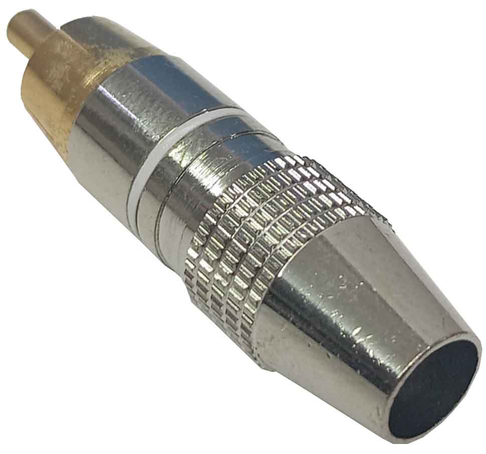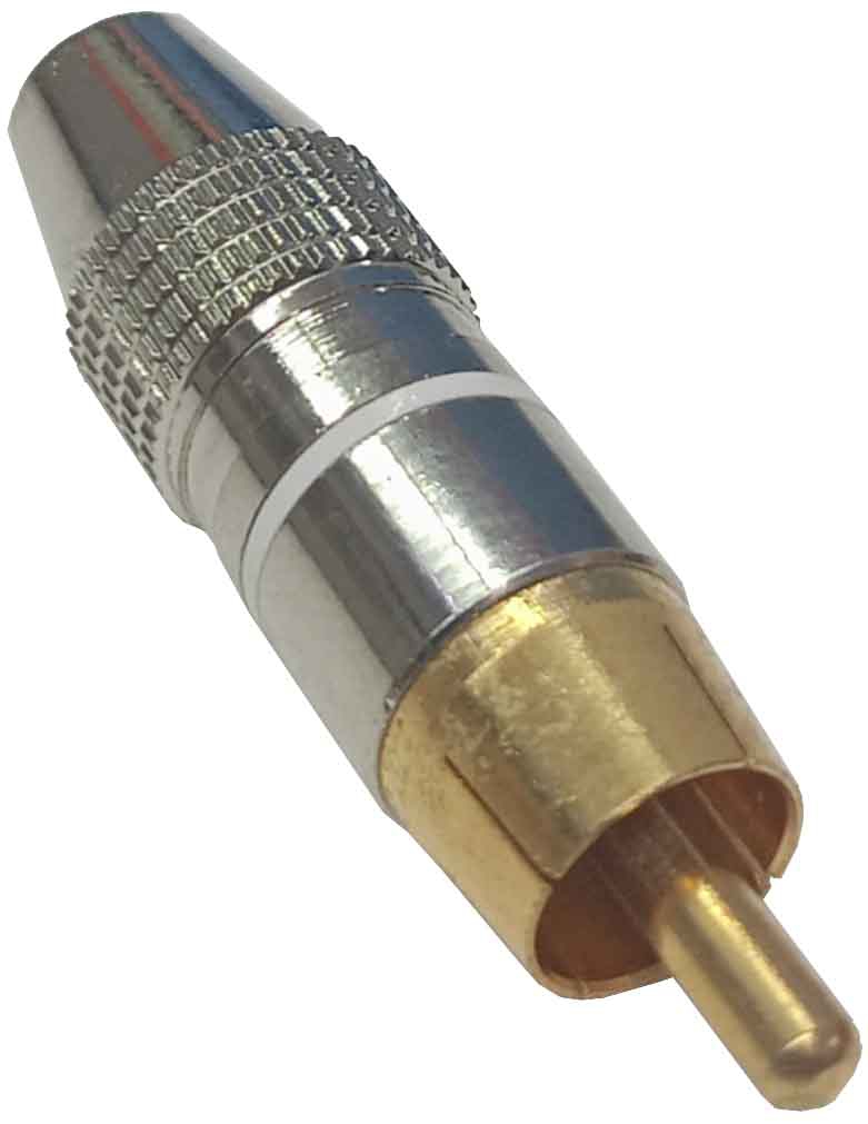 CONECTOR CLAVIJA DE AUDIO MACHO RCA COLOR ORO, PLATA Y BLANCA CARCASA METALICA. PRECIO POR UNIDAD.