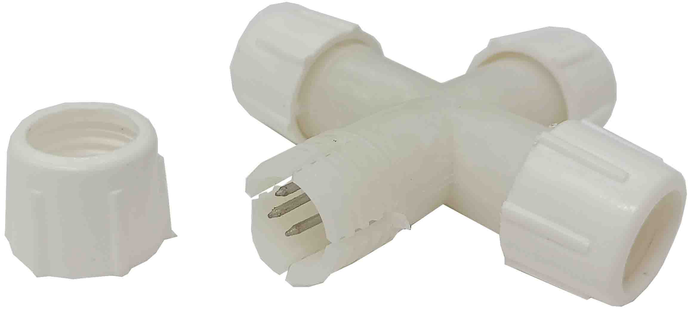 CONECTOR EN CRUZ + DE 3 PIN PARA TUBOS DE LED Y TUBOS DE LUZ LED NAVIDEÑOS.