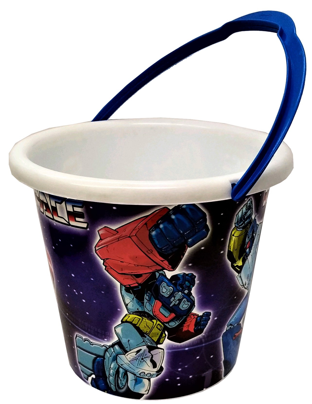CUBO DE PLAYA CON DECORACION DE ROBOTS. AVC 3014. MEDIDAS 19X16CM.