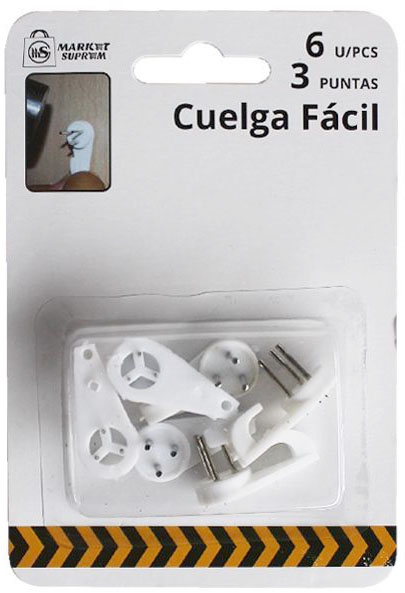 CUELGA FACIL DE 3 PUNTAS EN SET DE 6 UNIDADES DE MARKET SUPREM A04375.