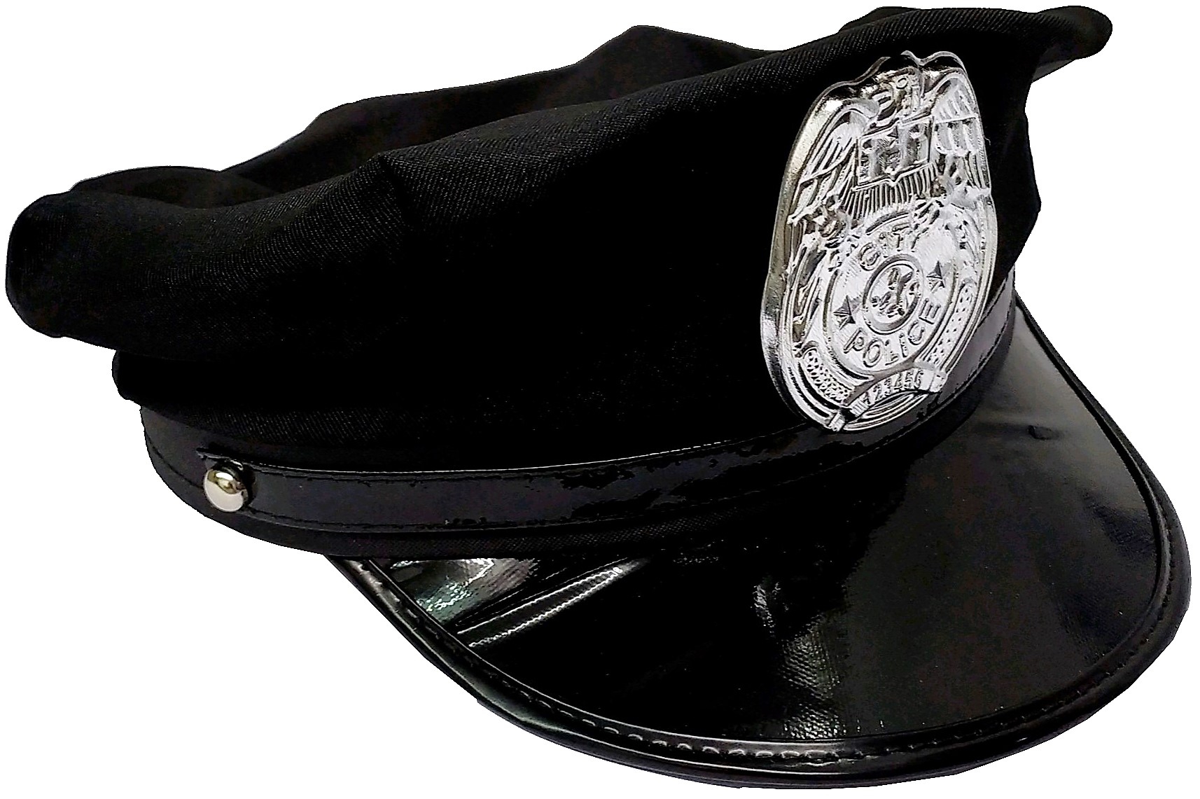 CARNAVAL DISFRAZ GORRA DE POLICIA NEGRA CON INSIGNIA DE POLICIA. POR MOTIVOS SANITARIOS ESTE PRODUCTO NO ADMITE DEVOLUCIONES.