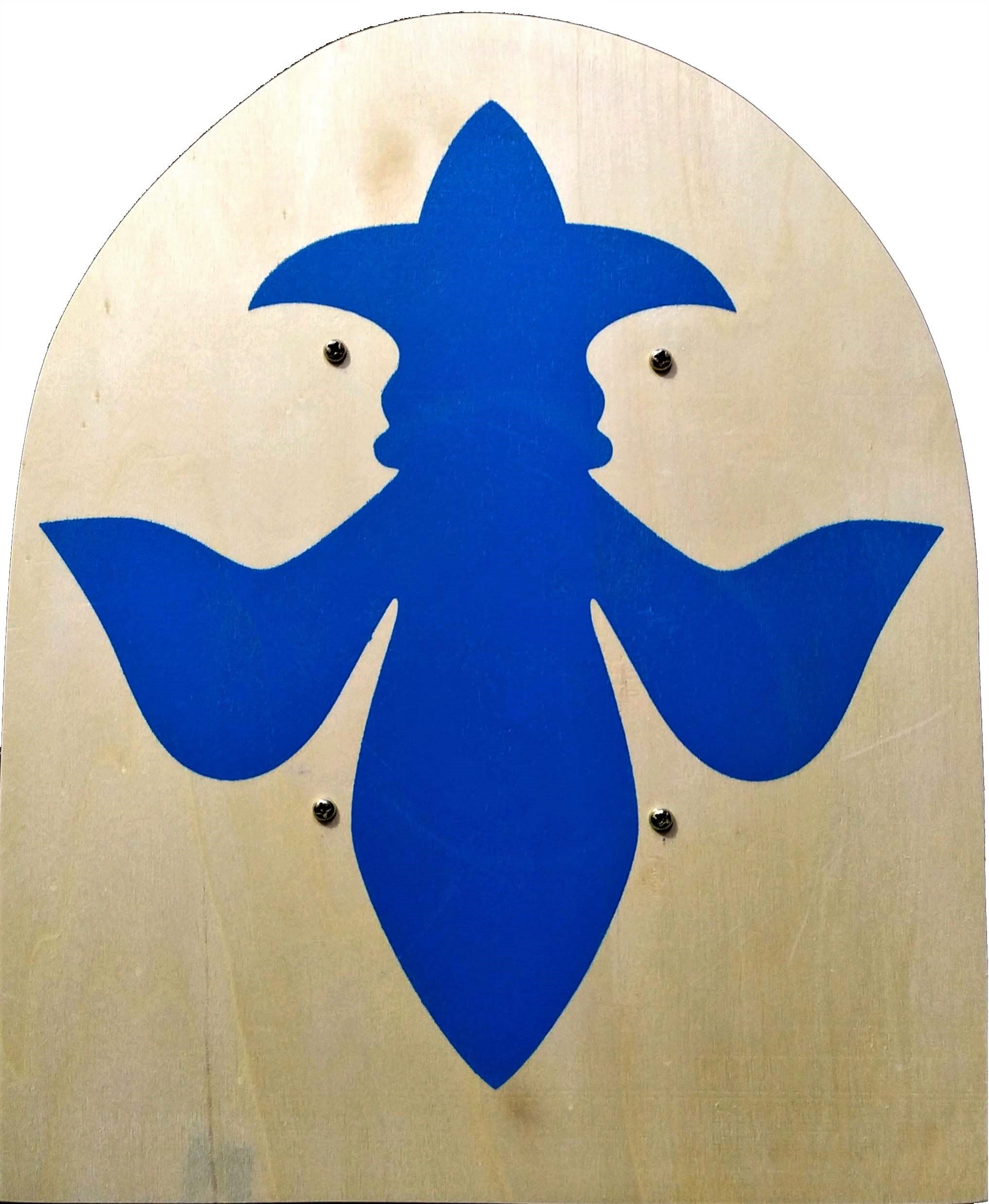 ESCUDO DE MADERA DECORADO DE 34CM. PARA CARNAVAL.