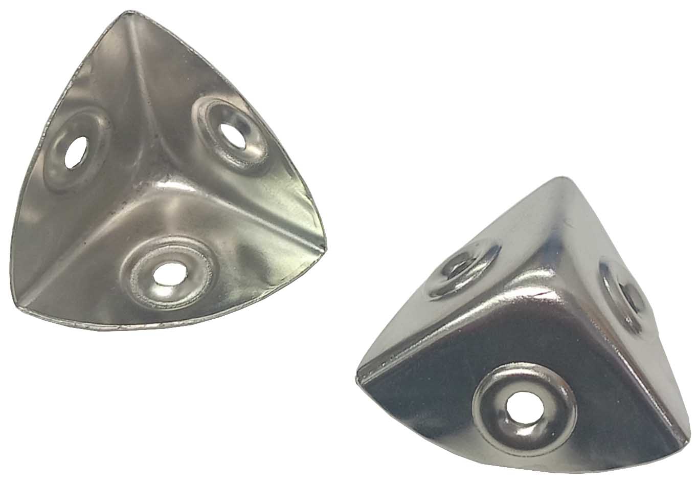 ESQUINERA METALICA CROMADA DE 30X30X30MM. EN FORMA DE PIRAMIDE CON AGUJERO EN CADA LADO. PROTECTOR DE ESQUINAS. PRECIO POR UNIDAD.