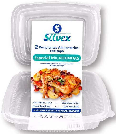 FIAMBRERA DE PLASTICO DE 750CC. ALIMENTARIA. CON TAPA. ESPECIAL PARA MICROONDAS. RECICLABLE. EN SET DE 2 UNIDADES. DE SILVEX 0166.