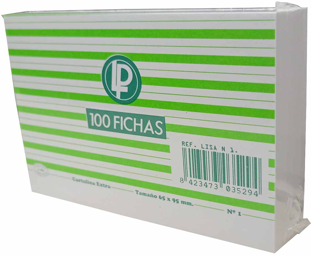 FICHA LISA DEL Nº 1 DE 65X95MM DE CARTULINA EXTRA EN PAQUETE DE 100 UNIDADES.