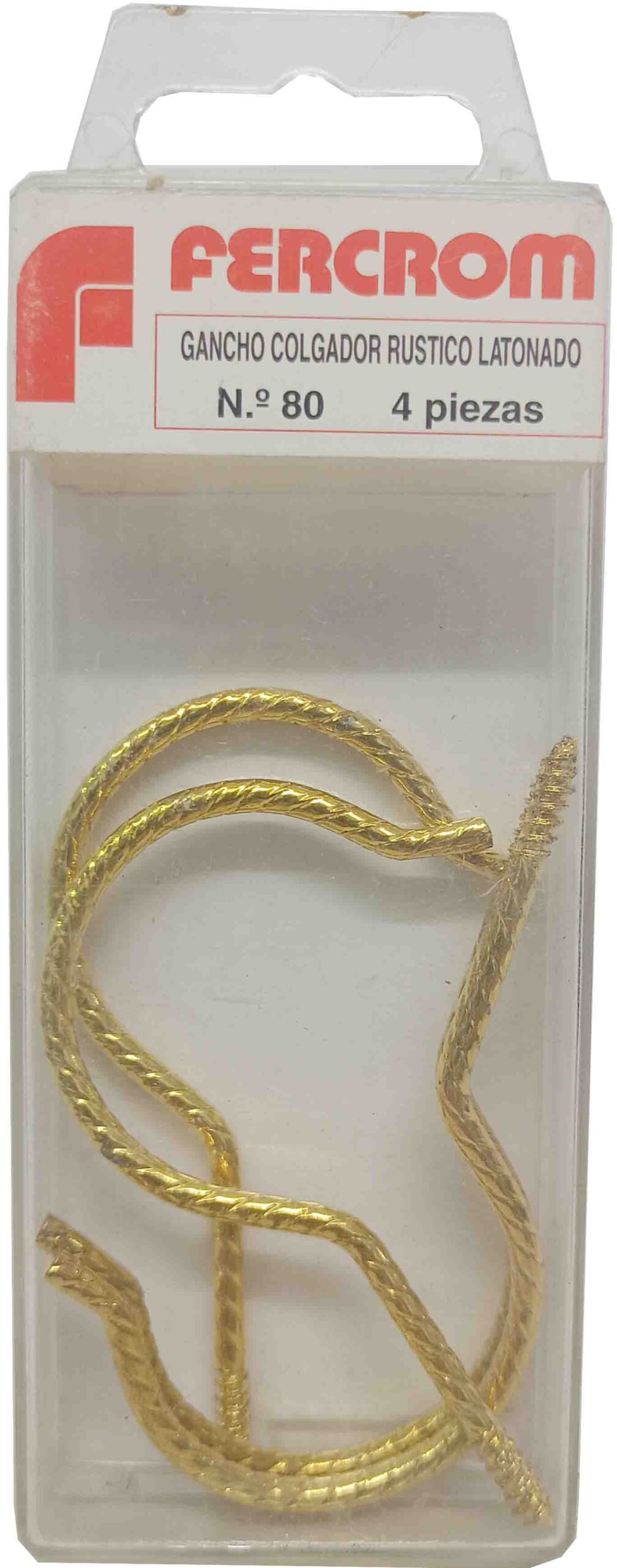 GANCHO COLGADOR RUSTICO LATONADO LABRADO CON ROSCA DEL Nº 80 EN BLISTER DE 4 UNIDADES. PRECIO POR BLISTER.