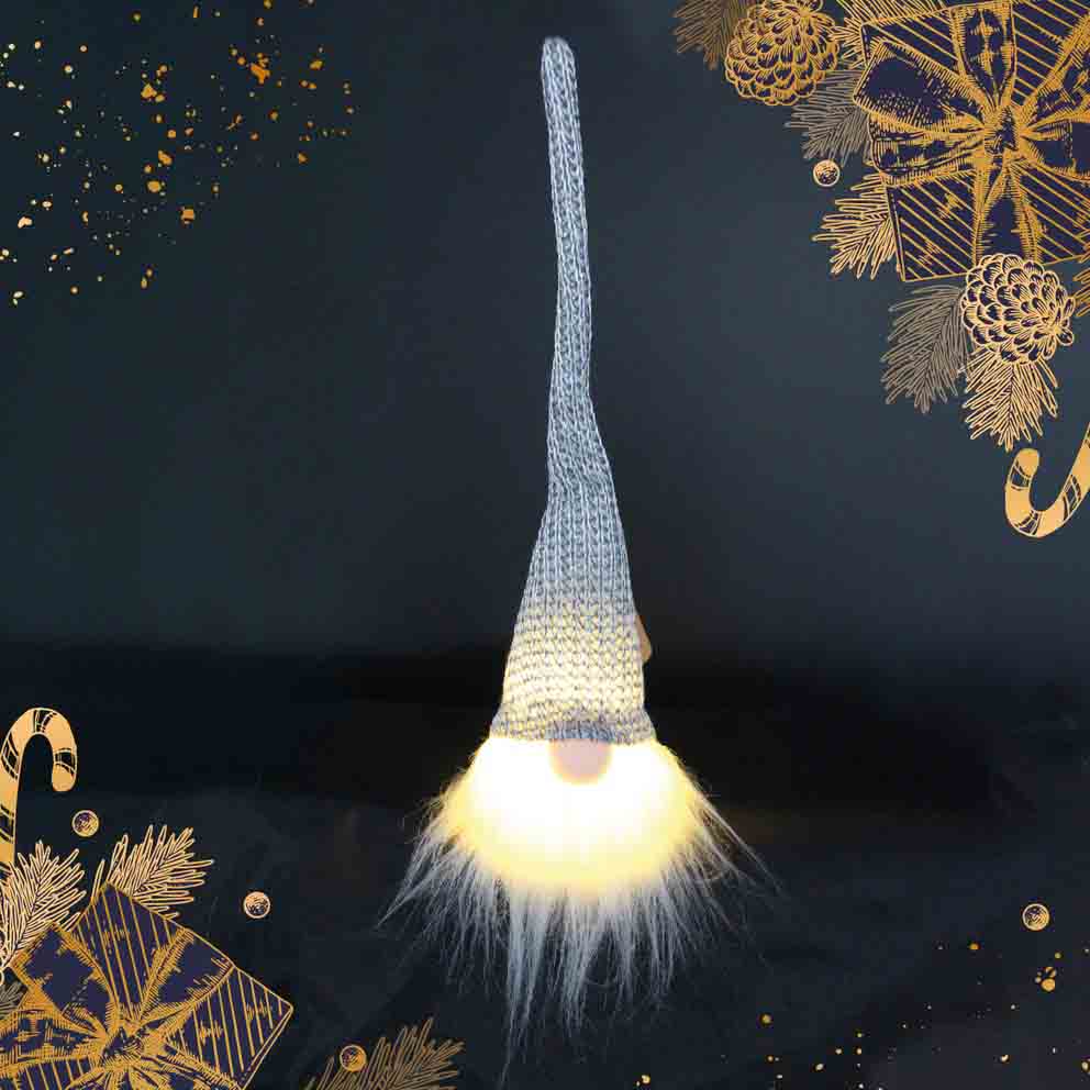 NAVIDAD GNOMO GELBIN GRIS LED 26CM BAMBA