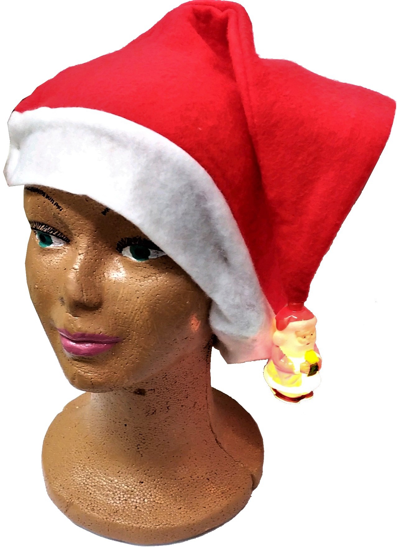 GORRO DE PAPA NOEL DE 45CM. PARA ADULTO. CON LUZ E ILUMINA FIGURA DE PAPA NOEL. FUNCIONA CON PILAS. POR MOTIVOS SANITARIOS ESTE PRODUCTO NO ADMITE DEVOLUCIONES.