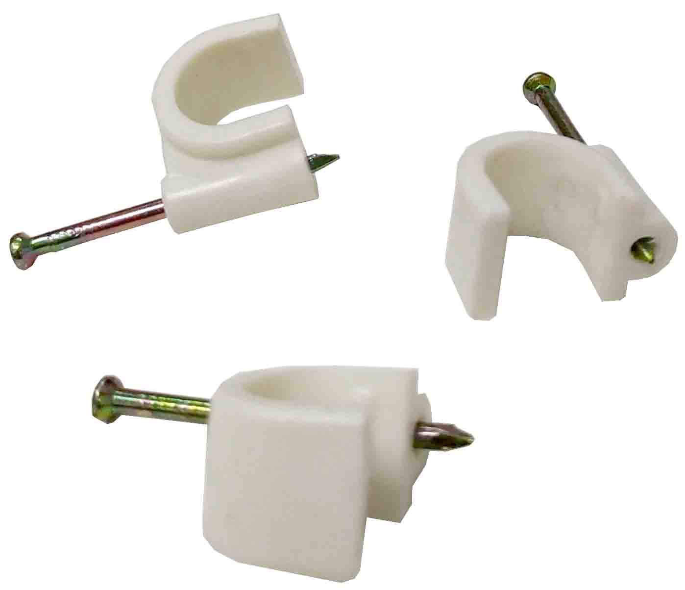 GRAPA DE PLASTICO Y PUNTA DE 14MM PARA CABLE REDONDO. PARA COMPRAS POR CAJAS CONSULTAR DESCUENTO. PRECIO POR UNIDAD.