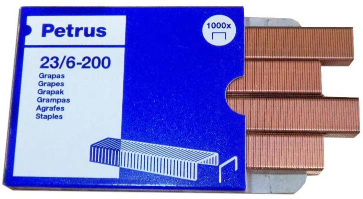 GRAPAS PETRUS 23/6-200 COBREADA EN CAJA DE 1000 UNIDADES.