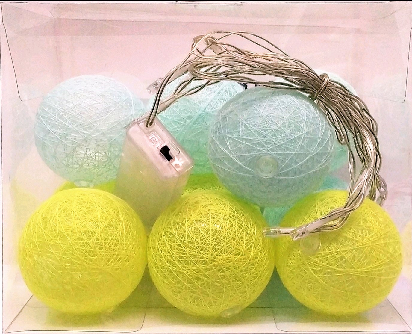 GUIRNALDA DE LUCES LED NAVIDEÑAS EN BOLAS AMARILLAS Y AZUL. FUNCIONA A PILAS.