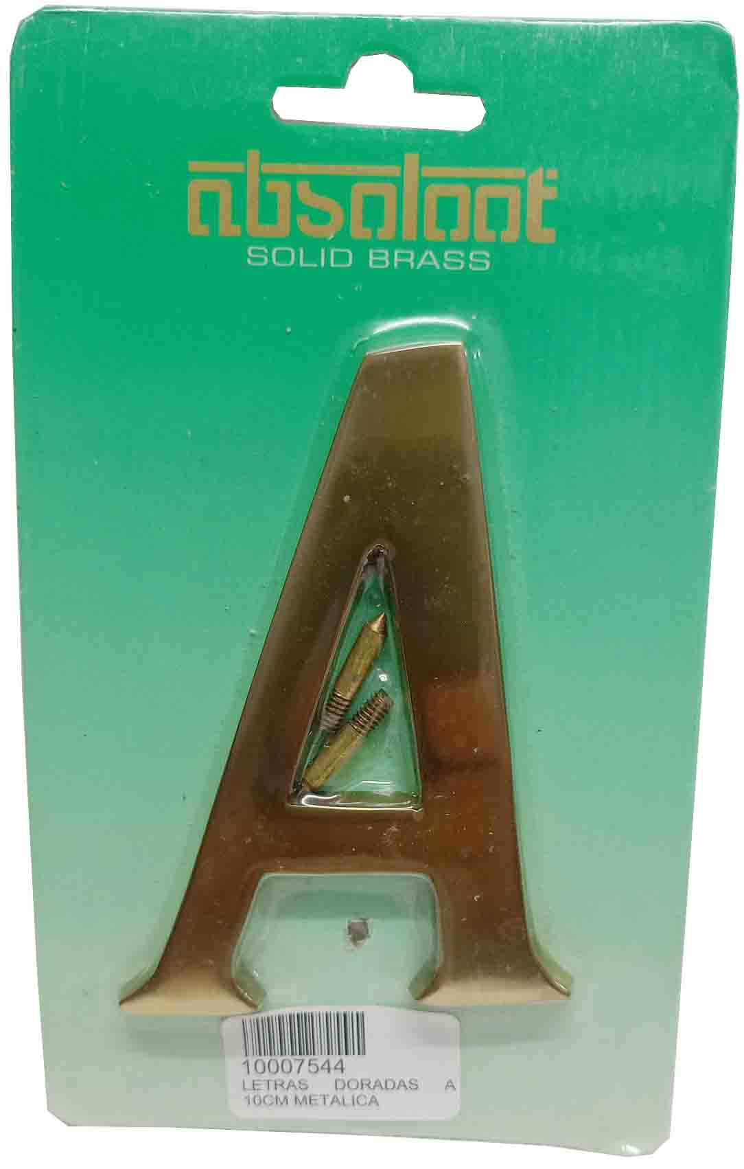 LETRA DORADA A DE 10CM METALICA INCLUYE TORNILLOS.