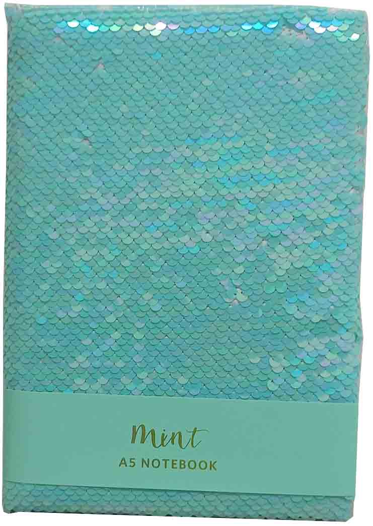 LIBRETA DE 4º A5 DE 80 HOJAS DE 80GRM. LISO CON LENTEJUELAS COLOR VERDE AGUA. DE MIQUELRIUS 1082.