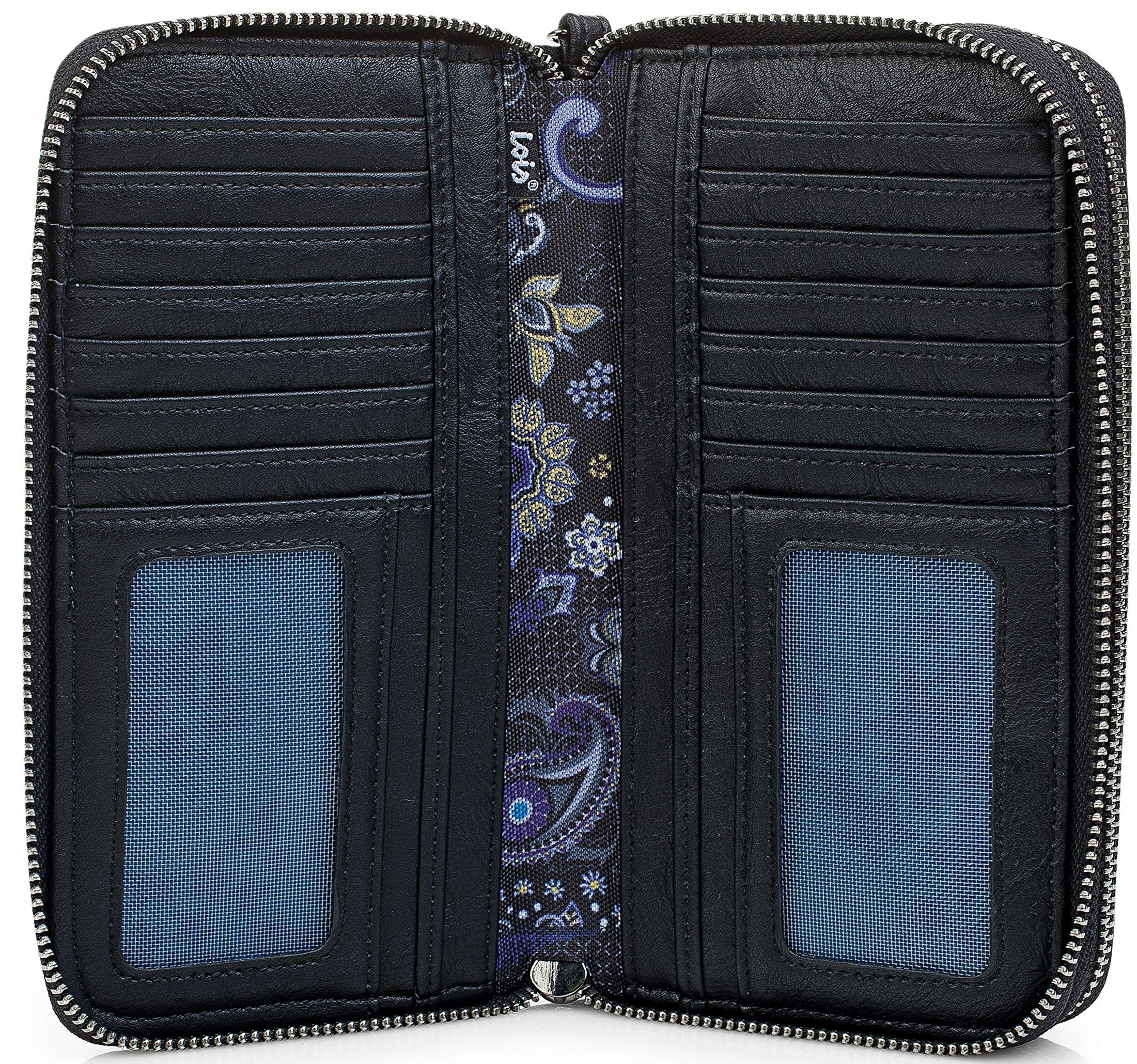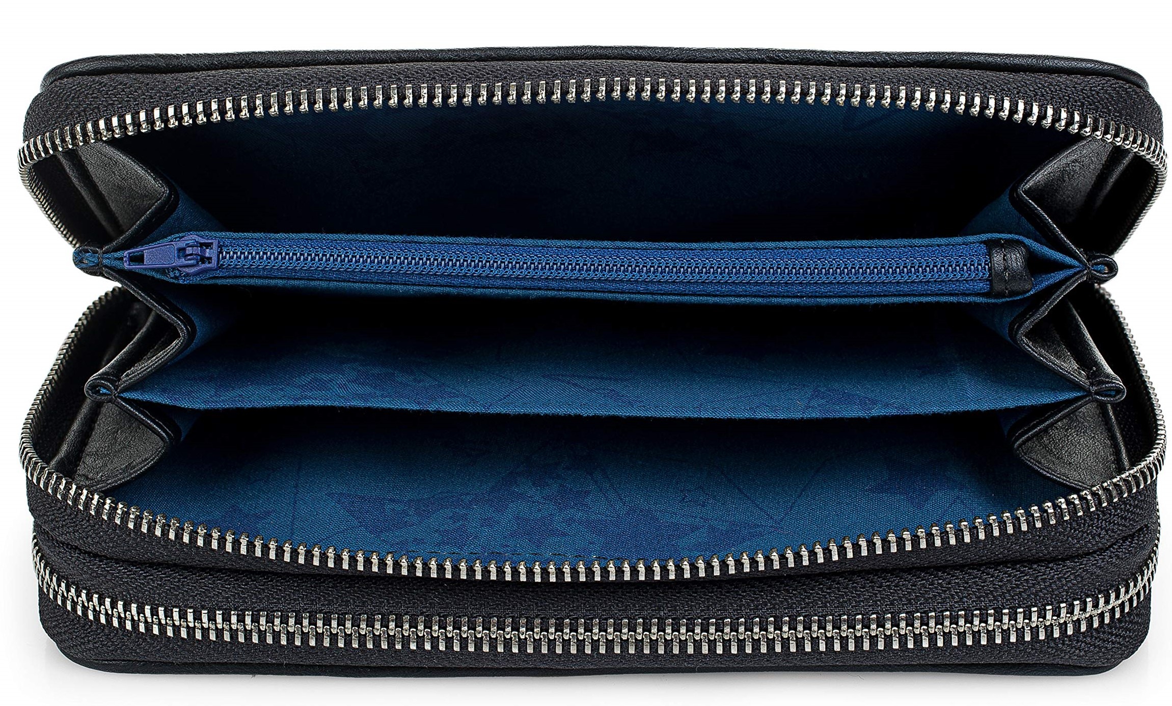 Cartera Billetero Tarjetero Monedero de Mujer Doble Cremallera. 16 Compartimentos para Tarjetas y documentación. Asa Adicional. Lona y Piel sintética Polipiel, Color Negro. PRECIO POR UNIDAD.