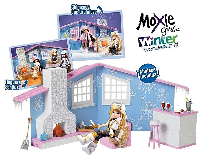 Tus muñecas Moxie Girlz podrán pasar las vacaciones de Navidad en esta bonita cabaña. La hoguera hace luz y la chimenea tira nieve. Incluye una muñeca.