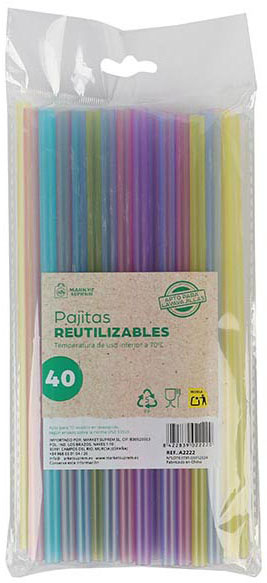 PAJITAS REUTILIZABLES EN SET DE 40 UNIDADES. DE 20CM. DE COLORES. APTA PARA LAVAVAJILLAS. DE MARKET SUPREM A2222. PRECIO POR SET.