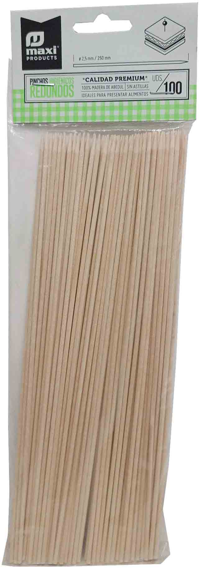PALILLOS HIGIENICOS REDONDOS DE MADERA DE ABEDUL DE 25CM X Ø 0,25CM EN BLISTER DE 100 UNIDADES DE MAXI MADERA 4006.