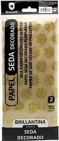 PAPEL DE SEDA DECORADO CON BRILLANTINA. DE LA MARCA POESSA. BOLSA DE 2 HOJAS. TAMAÑO 50X50CM.