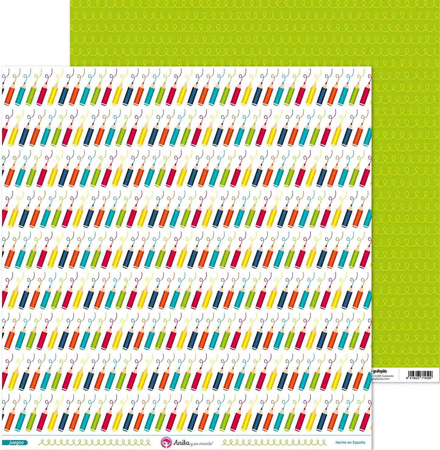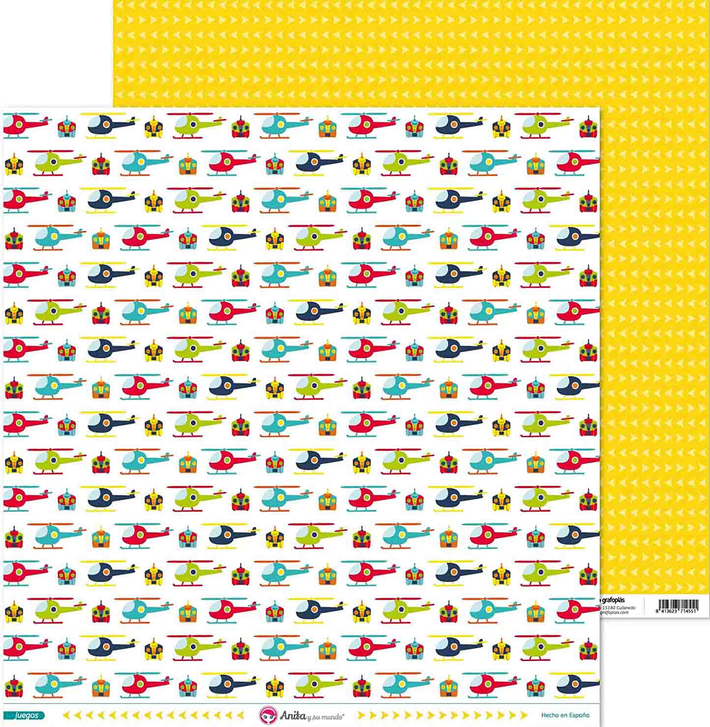 Papeles estampados para Scrap de la colección Juegos de Anita y su mundo (Colores). – Packs de 5 unidades de papeles estampados para scrap.