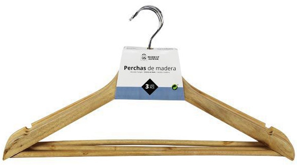 PERCHA DE MADERA PARA ARMARIO DE 45X23CM. EN SET DE 3 UNIDADES DE MARKET SUPREM A7852.