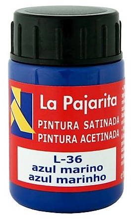 PINTURA A BASE DE LATEX COLOR AZUL MARINO. BOTE DE 35ML LA PAJARITA. Pintura a base de látex de acabado satinado. Se aplica directamente sobre madera, papel, piedra, ladrillo, estuco, cemento, etc. Basta con enjuagar los utensilios empleados con agua tras finalizar el trabajo. Bote de 35 ml.