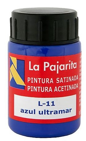 PINTURA A BASE DE LATEX COLOR AZUL ULTRAMAR. BOTE DE 35ML LA PAJARITA. Pintura a base de látex de acabado satinado. Se aplica directamente sobre madera, papel, piedra, ladrillo, estuco, cemento, etc. Basta con enjuagar los utensilios empleados con agua tras finalizar el trabajo. Bote de 35 ml.