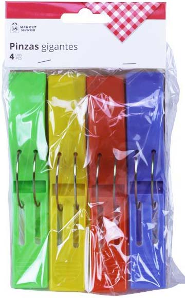 PINZA GIGANTE DE PLASTICO DE 14,5X9,5CM. EN SET DE 4 UNIDADES. DE COLORES SURTIDOS. DE MARKET SUPREM A7209.
