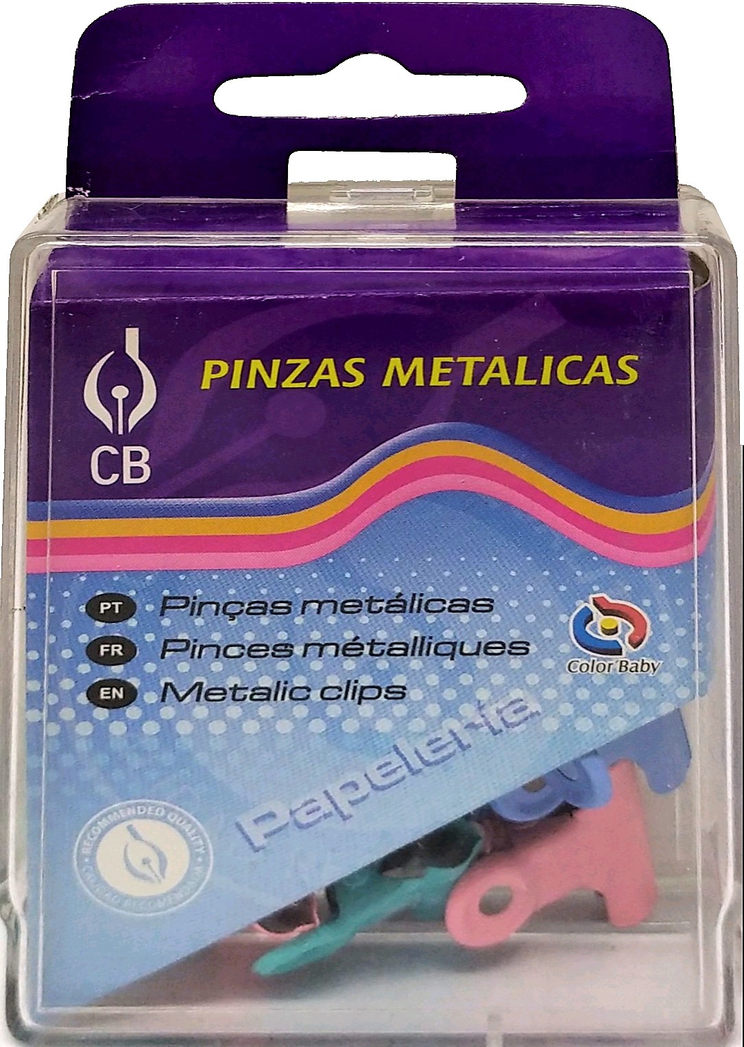 PINZAS METALICAS DE COLORES PEQUEÑAS EN CAJAS DE 12 UNIDADES.
