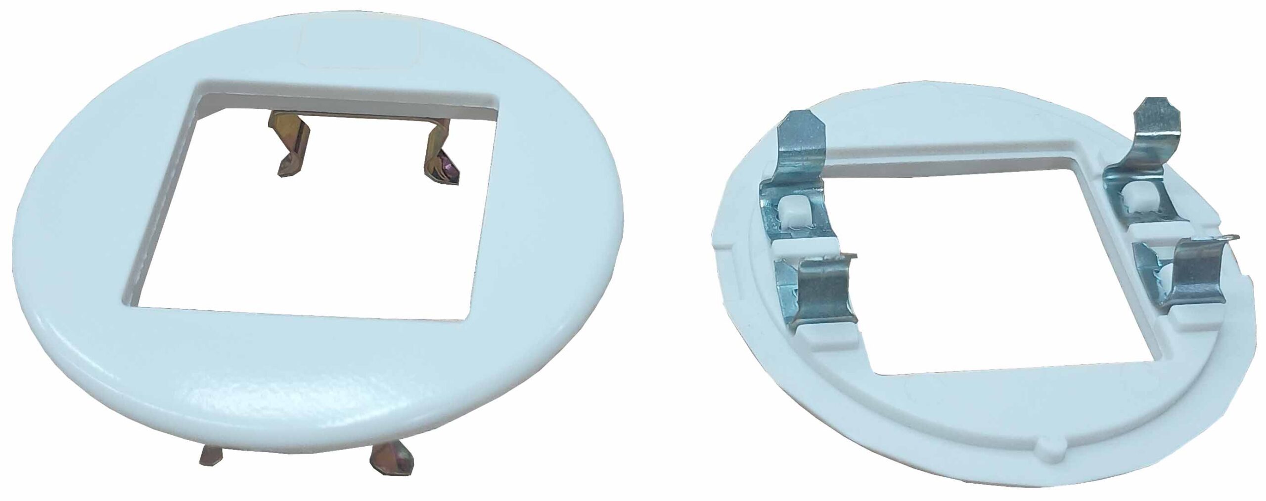 PLACA SUPLEMENTO DE 1 ELEMENTO DE SIMON SERIE 32 REDONDA Ø 5,80CM. CON APERTURA CENTRAL CUADRADA.