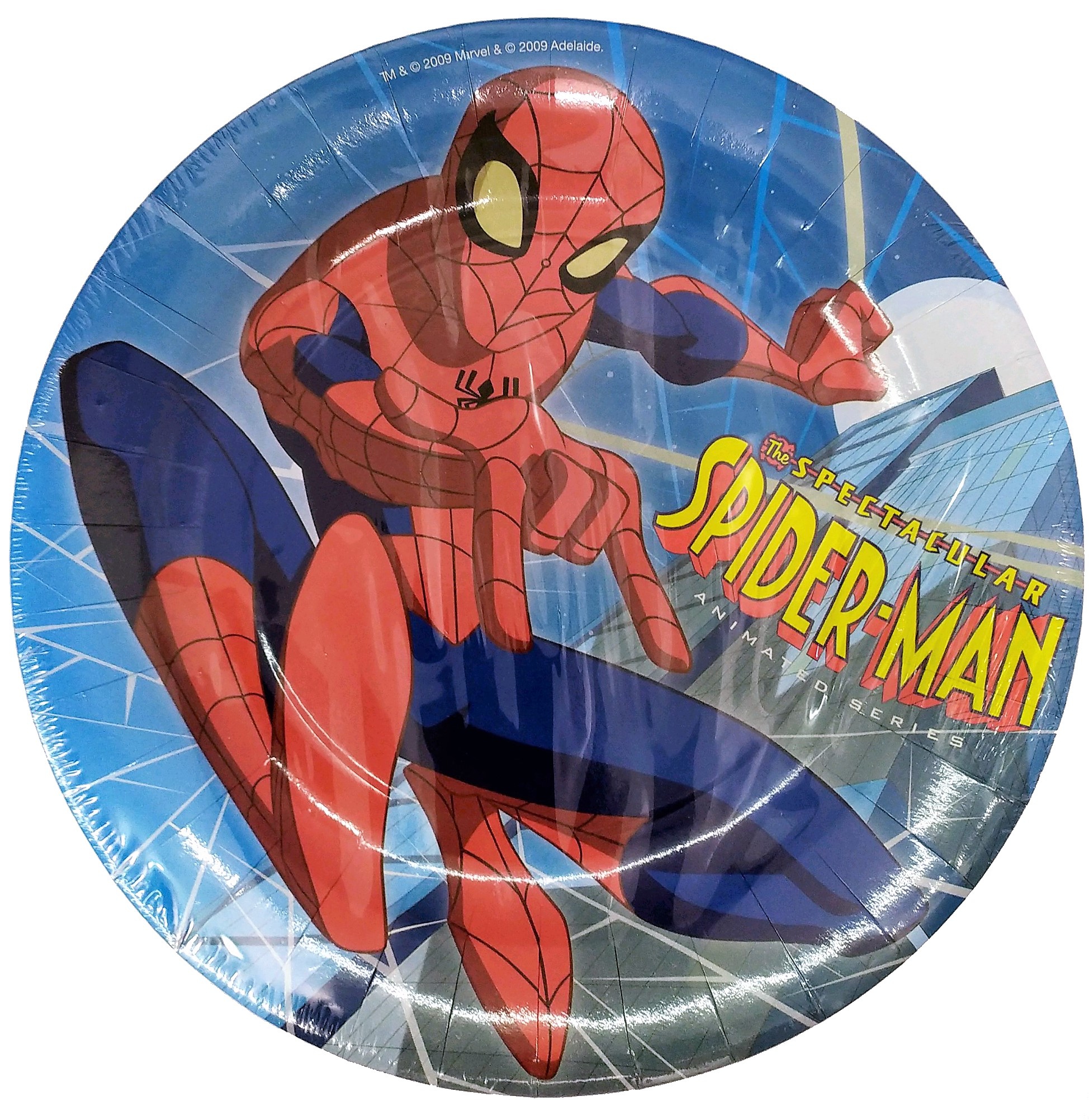 PLATO DE CARTON DE 23CM DE SPIDERMAN EN PAQUETES DE 8 UNIDADES.