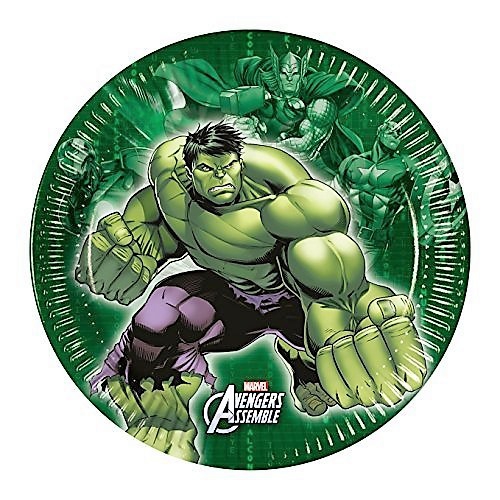 PLATO DE CARTON DE 19.5CM DE LOS VENGADORES EN PAQUETES DE 8 UNIDADES. PRECIO POR PAQUETE.