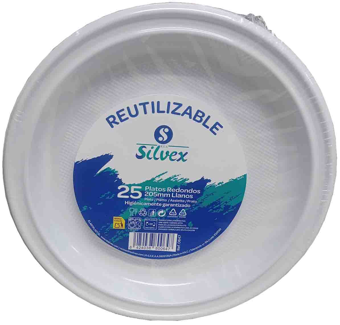 PLATO REDONDO LLANO DE PLASTICO REUTILIZABLE DE Ø 2O.5CM. EN SET DE 25 UNIDADES DE SILVEX 0647.